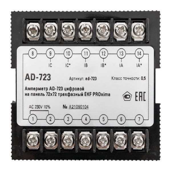 Амперметр цифровой AD-723 3ф на панель 72х72 EKF ad-723 -