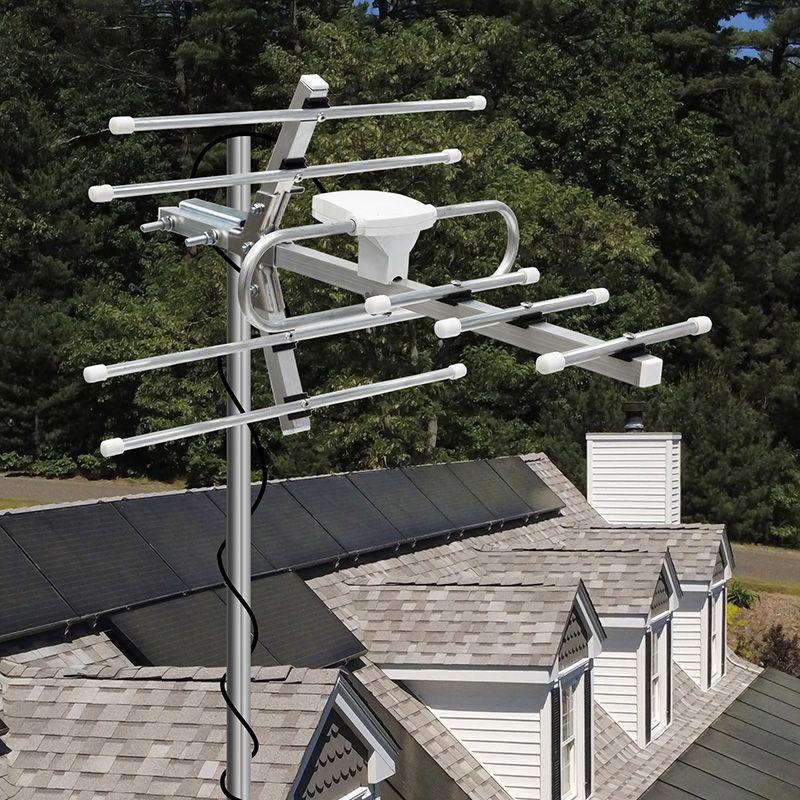 Антенна оснащена встроенным усилителем, предотвращающим помехи от базовых станций сотовой связи и значительно улучшающим прием вещания.