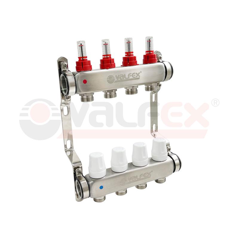 Блок коллекторов 1дюйм х 3 вых. евроконус 3/4дюйм с расходомером нерж. сталь (2) К VALFEX VF.584.0603 -