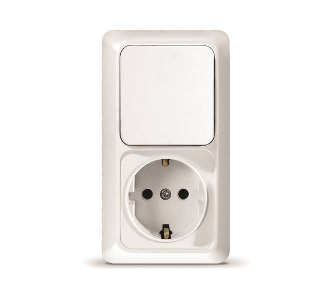 Корпус представляет собой форму из пластика, белого цвета. Контактная группа изделий изготовлена из латуни. Монтируется вертикально, на глубину 48 мм, на поверхность стены. Рекомендованы для жилых помещений и административных зданий.