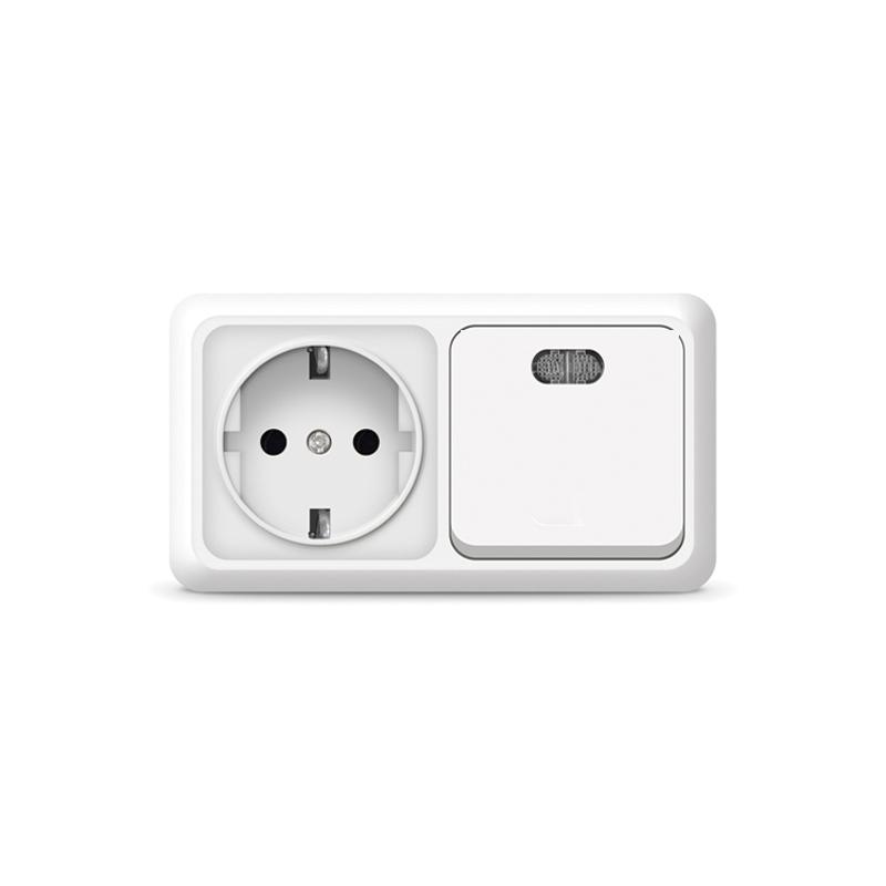 Блок ОП Олимп 1-кл. вык. с подсветкой + роз. с заземл. горизонт. бел. UNIVersal О0036