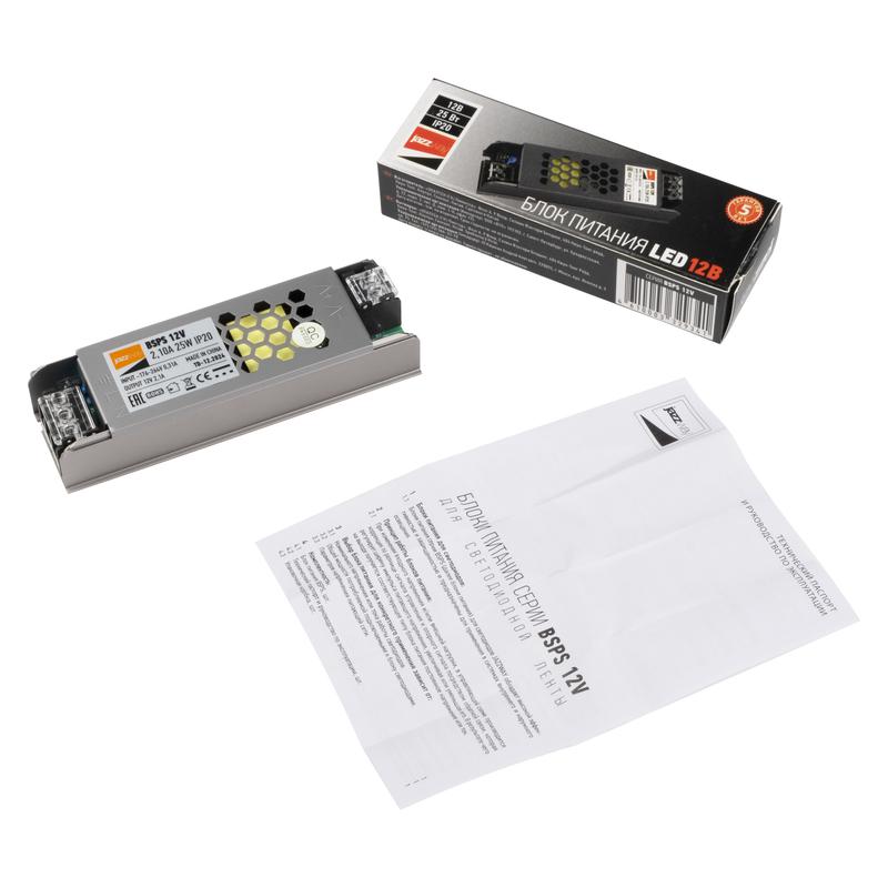 Блок питания для светодиодной ленты 25Вт 2.1А 12В IP20 BSPS метал. JazzWay 3329341A -
