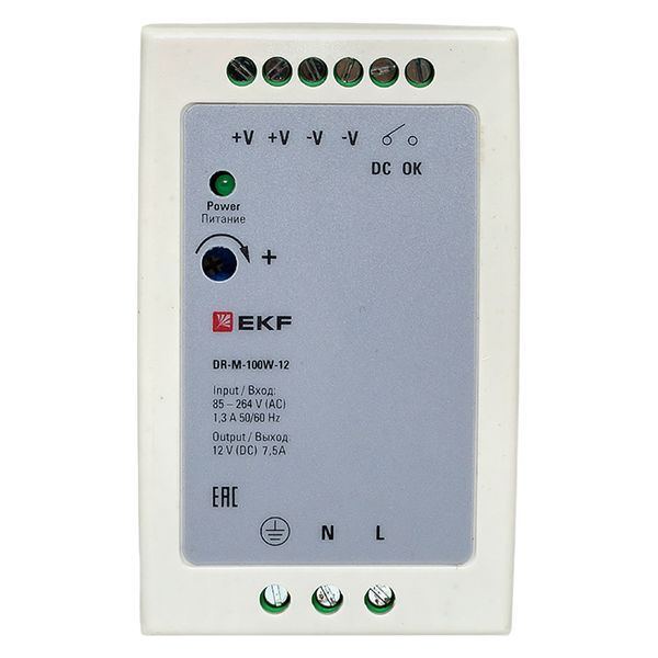 Блок питания на DIN-рейку 100Вт Uвх ~ 220В AC m Uвых - 12В DC постоянного тока EKF DR-M-100W-12 -