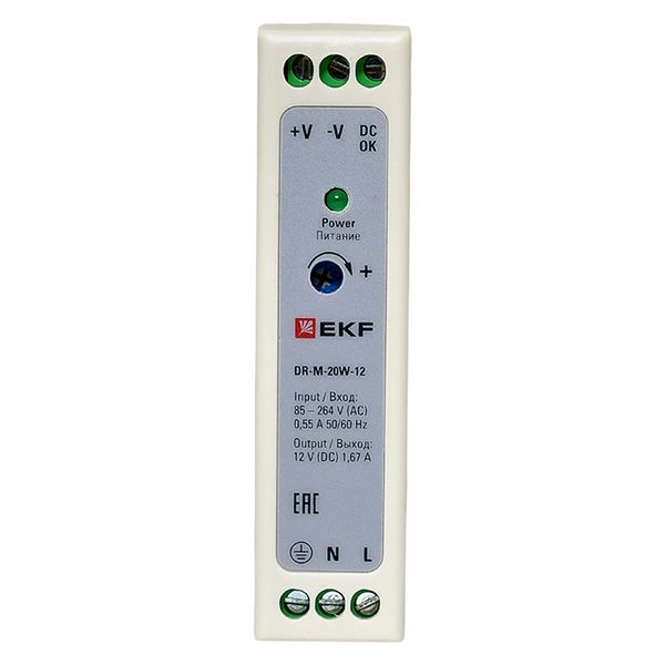 Блок питания на DIN-рейку 20Вт Uвх ~ 220В AC m Uвых - 12В DC постоянного тока EKF DR-M-20W-12 -
