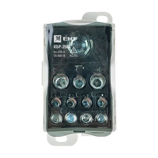 Блок распределительный КБР EKF PROxima предназначен для обеспечения удобного распределения питания в шкафах и используется в качестве переходного клеммника для подключения кабельной жилы большего сечения к нескольким проводникам меньшего сечения, а также для организации главной заземляющей шины (ГЗШ).