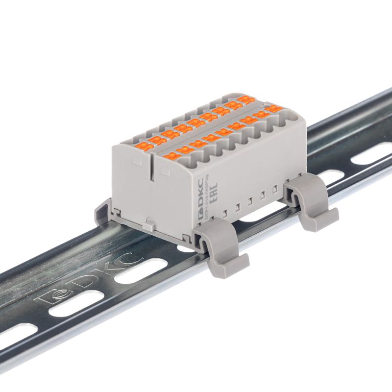 Блок распределительный с горизонт. адаптером на рейку шир. 35мм зажим push-in 18 точек подключения 2.5кв.мм сер. DKC DTP1-018-04SPUG-H