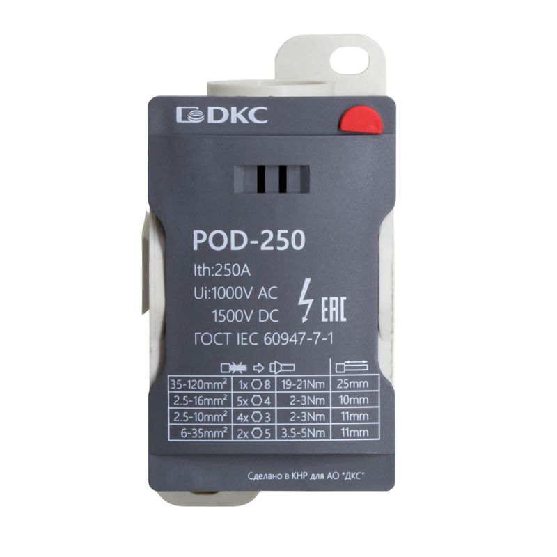 Блок распределительный винтовой зажим 1х120кв.мм 2х35кв.мм 5х16кв.мм 4х10кв.мм DKC POD-250 -