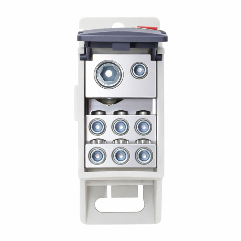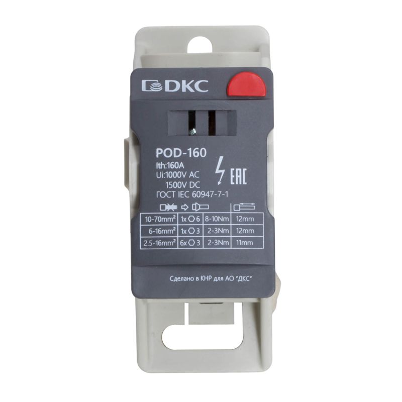Распределительный блок POD-160 с винтовым зажимом служит для соединения и распределения многожильных или обжатых наконечником гибких проводников в электрических щитах. Установка на DIN-рейку высотой 35 мм или монтажную плату. Боковой штифт обеспечивает стыковку блоков между собой. На крышке распределительного блока нанесена ключевая информация, а также есть паз для маркировки NUTB5. В комплект входит цветная пластиковая маркировка (синий, зеленый, красный, желтый) и самоклеящаяся (L1, L2, L3, N, заземление, круг). Корпус выполнен из полиамида с классом горючести V0 UL-94. Степень защиты – IP20. Цвет – серый, 1 ввод с сечением 10-70 мм2, 7 точек подключения (выводов) с номинальным сечением проводников 2,5-16 мм2. Габариты (В?Ш?Г) – 48,5?31,1?76,5 мм.