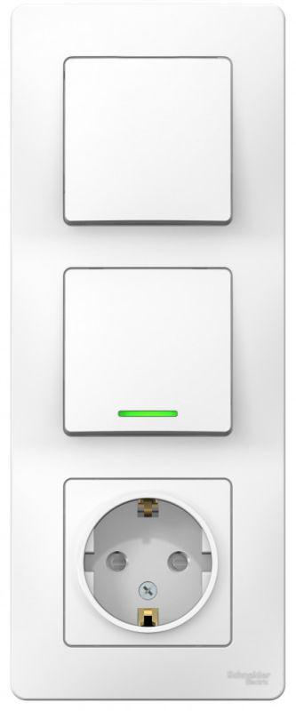 Блок СП Blanca (розетка с заземл. защ. шторки 16А 250В + 1-кл. выкл. с подсветкой + 1-кл. выкл.) бел. SE BLNBS101111
