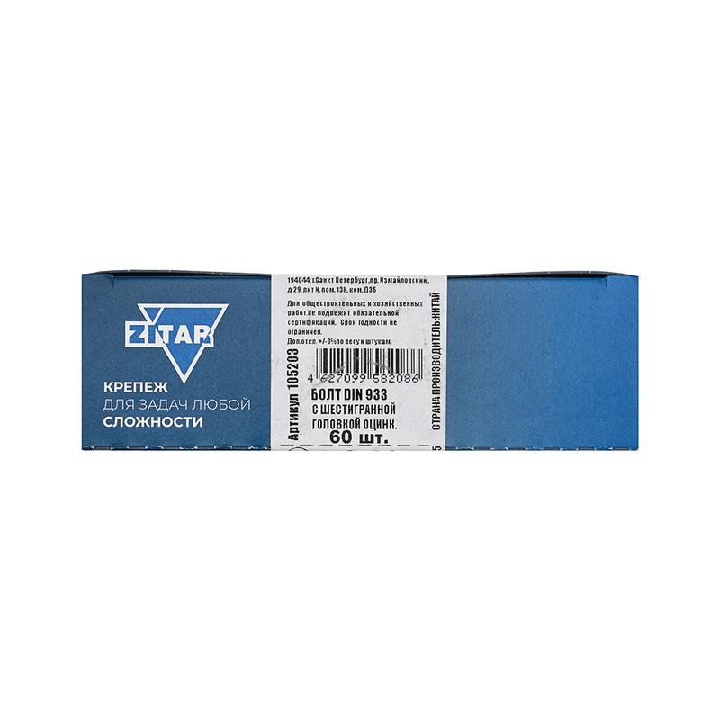 Болт DIN933 с шестигранной головкой М6х30 оцинк. (уп.60шт) Tech-KREP 105203 -