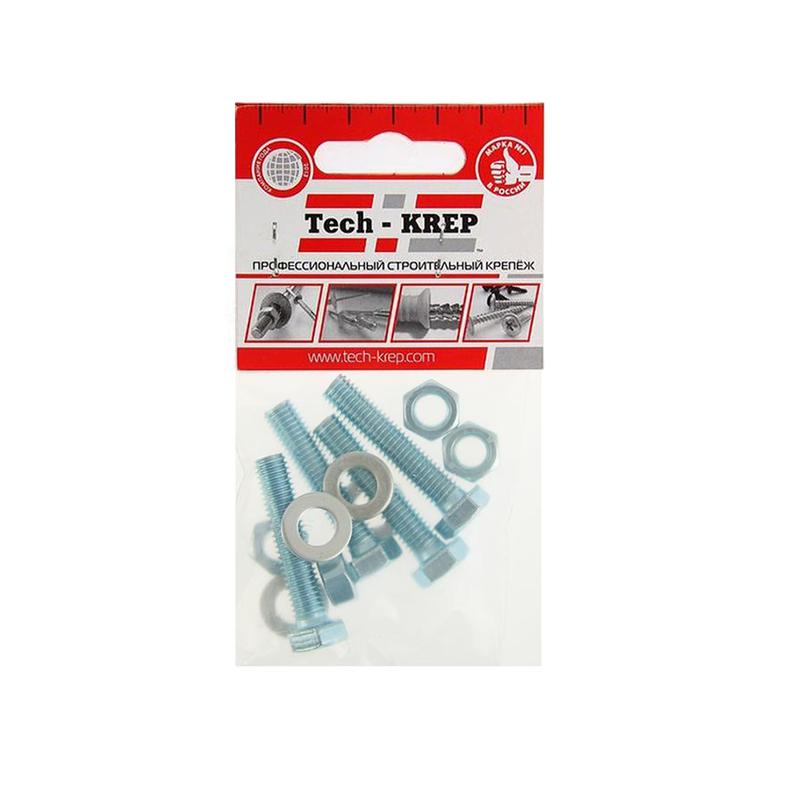 Болт DIN933 с шестигранной головкой М8х40+гайка+шайба оцинк. (уп.4шт) Tech-KREP 112723
