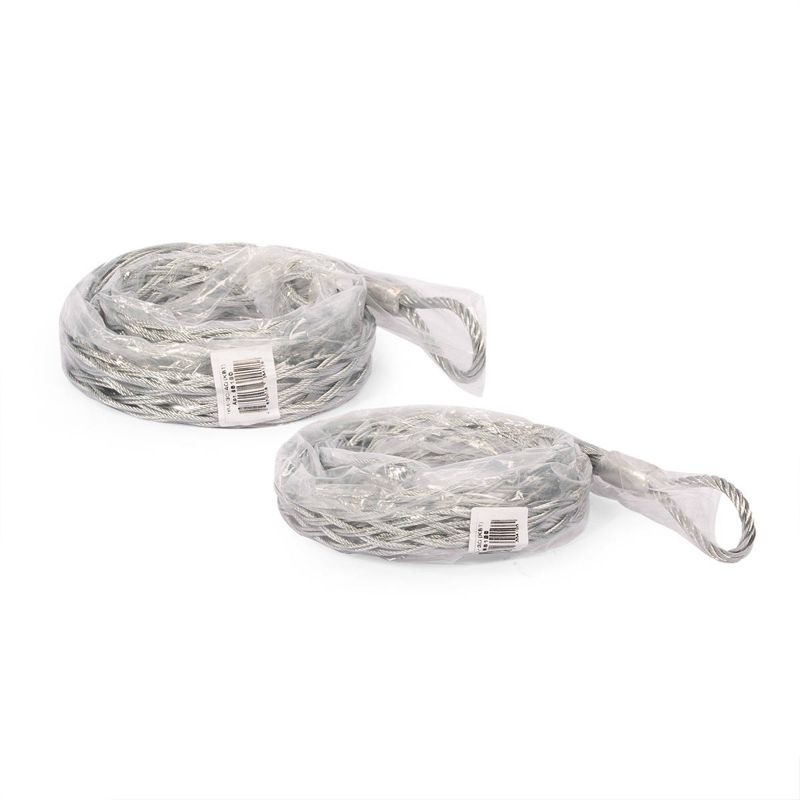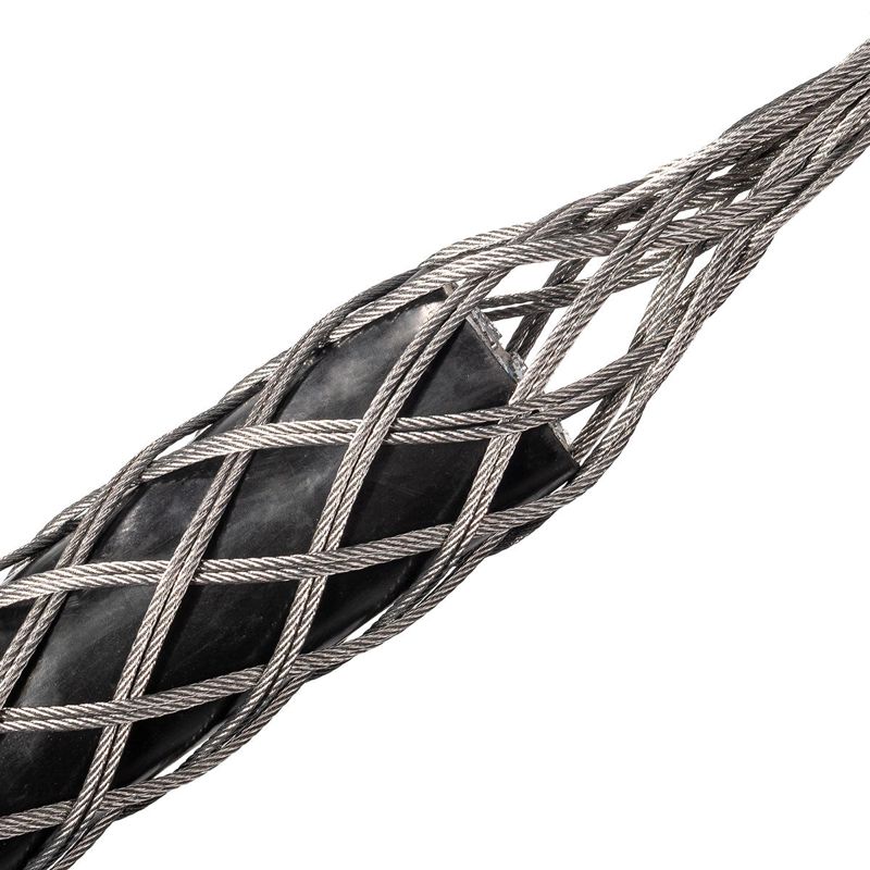 | Краткая характеристика | •Диапазон по диаметру кабеля: 40-50 мм; •Рабочая нагрузка: 27.5 кН; •Разрушающая нагрузка: 55.0 кН; •Материал: оцинкованная сталь; •Плетеная конструкция обеспечивает необходимую эластичность; •Гибкая петля позволяет легко проходить изгибы в кабельного канала; |