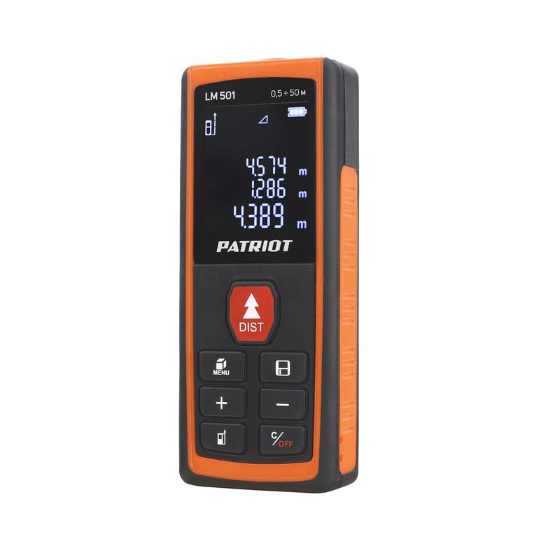 Дальномер лазерный LM 501 макс. дистанция 50м измерение площади объема подсветка память 30изм. чехол в компл. PATRIOT 120201501