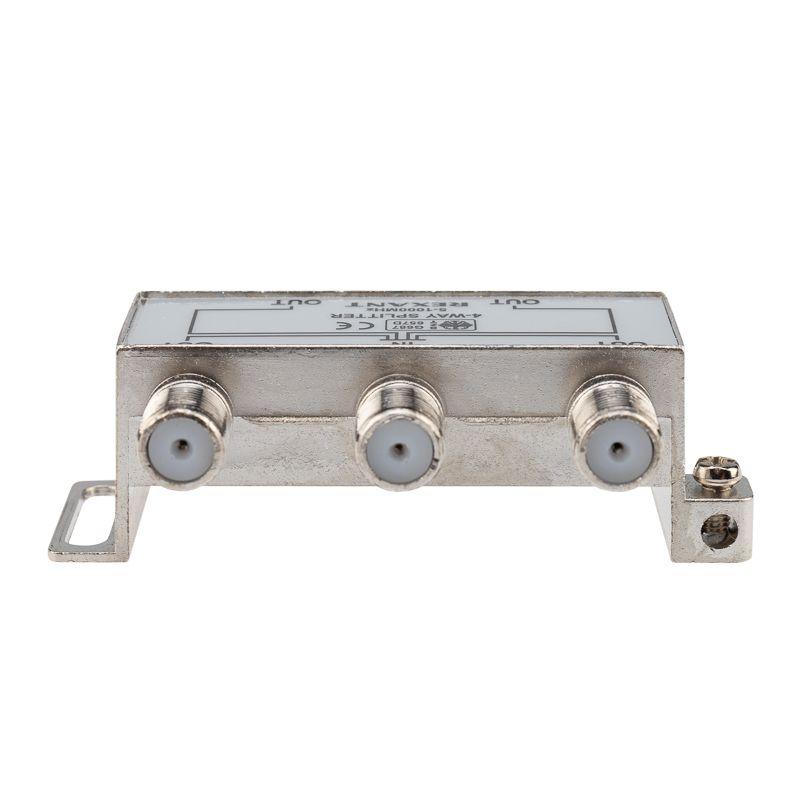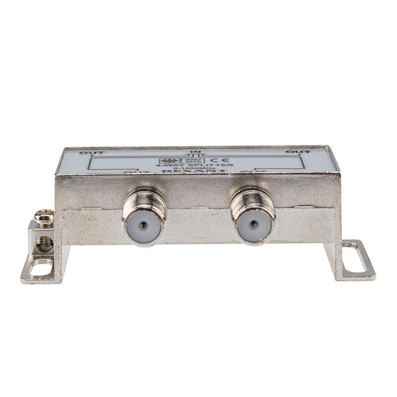 Сигнал, подающийся на вход, делится на четыре равные части и передается на выходы. Для подключения кабелей используются стандартные F-разъемы.