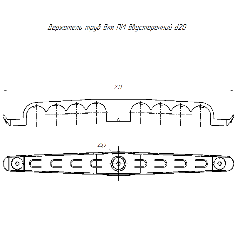 Держатель труб d20мм для прямого монтажа двусторон. на 8 мест черн. (уп.20шт) Промрукав PR13.03295