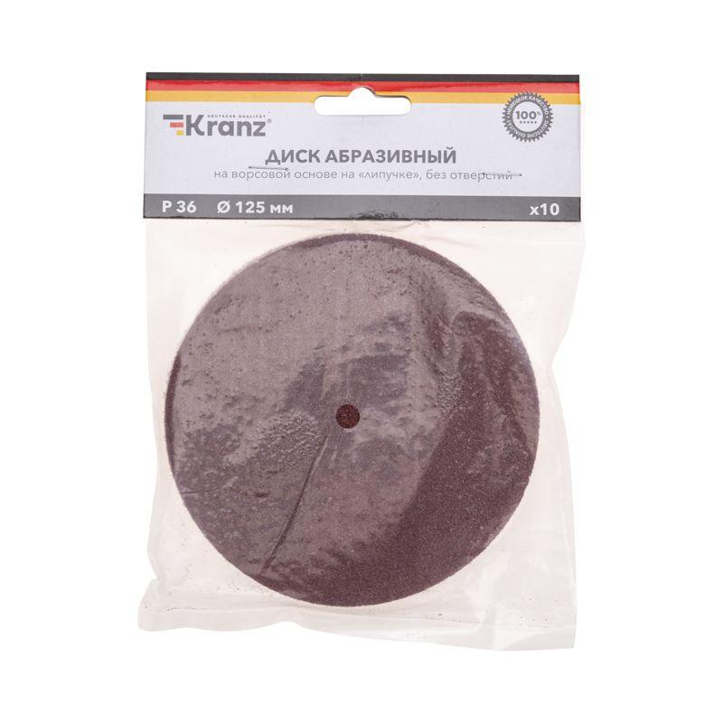 Диск абразивный на ворсовой основе на липучке без отверстий P36 125мм (уп.10шт) Kranz KR-91-1143