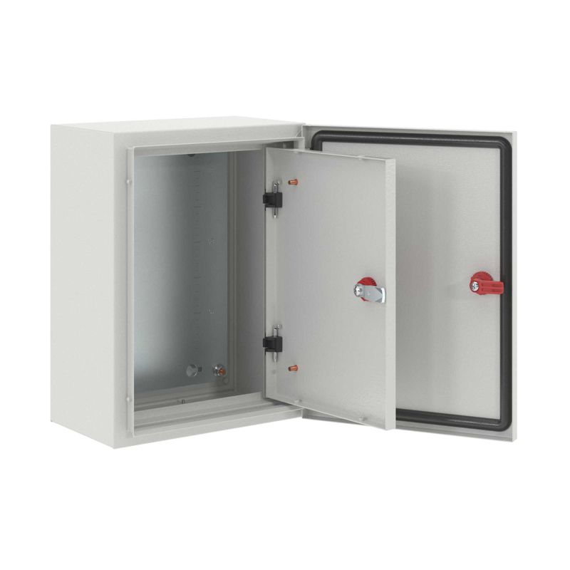 Дверь внутренняя для корпусов ST/STX/STE/STEX/STH изготавливается из стали толщиной 1,5 мм с атмосферостойким порошковым покрытием, цвет RAL7035. Личинка замка, ригели, петли из металла. Допустимая статическая нагрузка на дверь 12 кг, максимальный угол открытия 95°, степень пыле- и влагозащиты IP20 при сохранении IP66 для корпуса. Расстояние от монтажной платы до внутренней двери при глубине корпуса: 300 мм - от 227 до 259 мм; 400 мм - от 327 до 359 мм. Комплект поставки: внутренняя дверь с рамой, петли, замок с личинкой под ключ с двойной бородкой, комплект заземления без проводов. Габариты 1000x800 (ВхШ) мм.