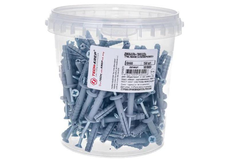 Дюбель-гвоздь 6х40 с грибовидной манжетой полипропилен (уп.150шт) ведро Tech-Krep 101989 -