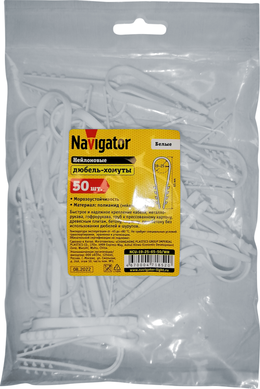 Дюбель-хомут 71 852 NCU-19-25-65-50/WH для круглого кабеля бел. (уп.50шт) Navigator 71852