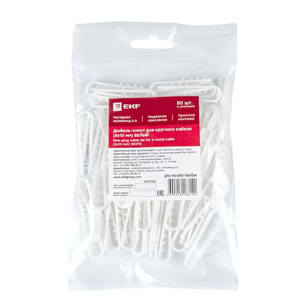 Дюбель-хомут d5-10мм для круглого кабеля бел. (уп.50шт) PROxima EKF plc-ncs50-5x10w -