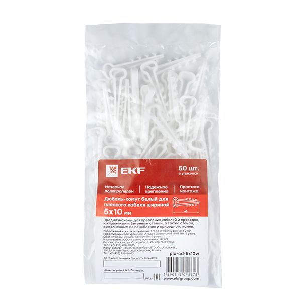 Дюбель-хомут d5-10мм для плоского кабеля полипропилен бел. (уп.50шт) EKF plc-cd-5x10w