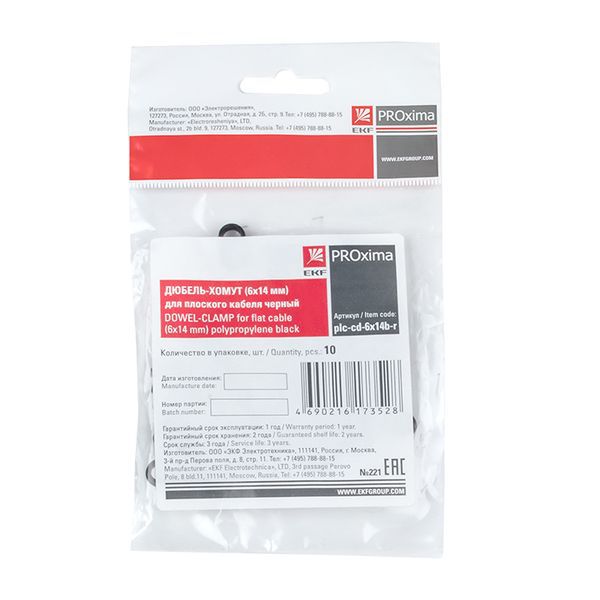 Дюбель-хомут d6х14мм для плоского кабеля черный (уп.10шт) PROxima EKF plc-cd-6x14b-r