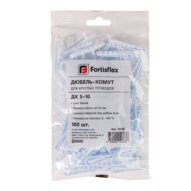 Дюбель-хомут ДХ 5-10 для круглого кабеля нейлон бел. (уп.100шт) Fortisflex 56866