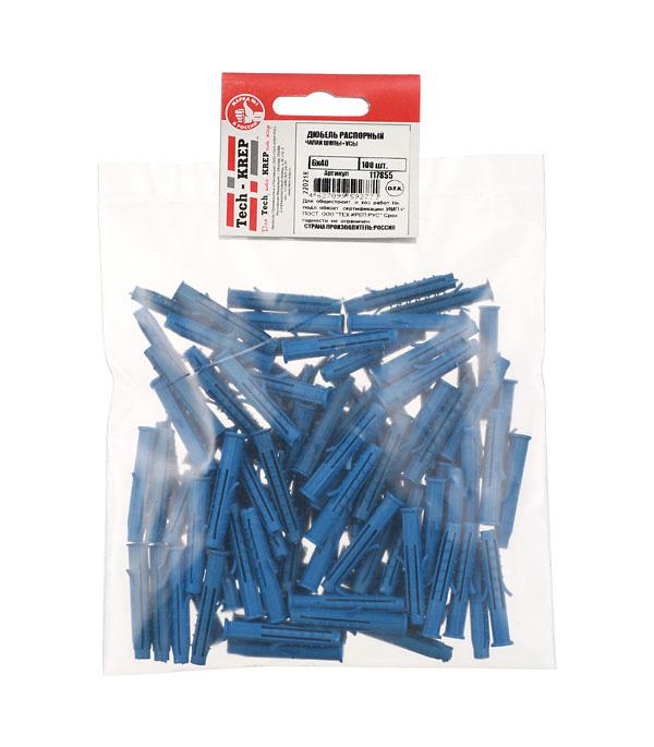 Дюбель распорный Чапай 6х40 шипы+усы полипропилен (уп.100шт) пакет Tech-Krep 117855