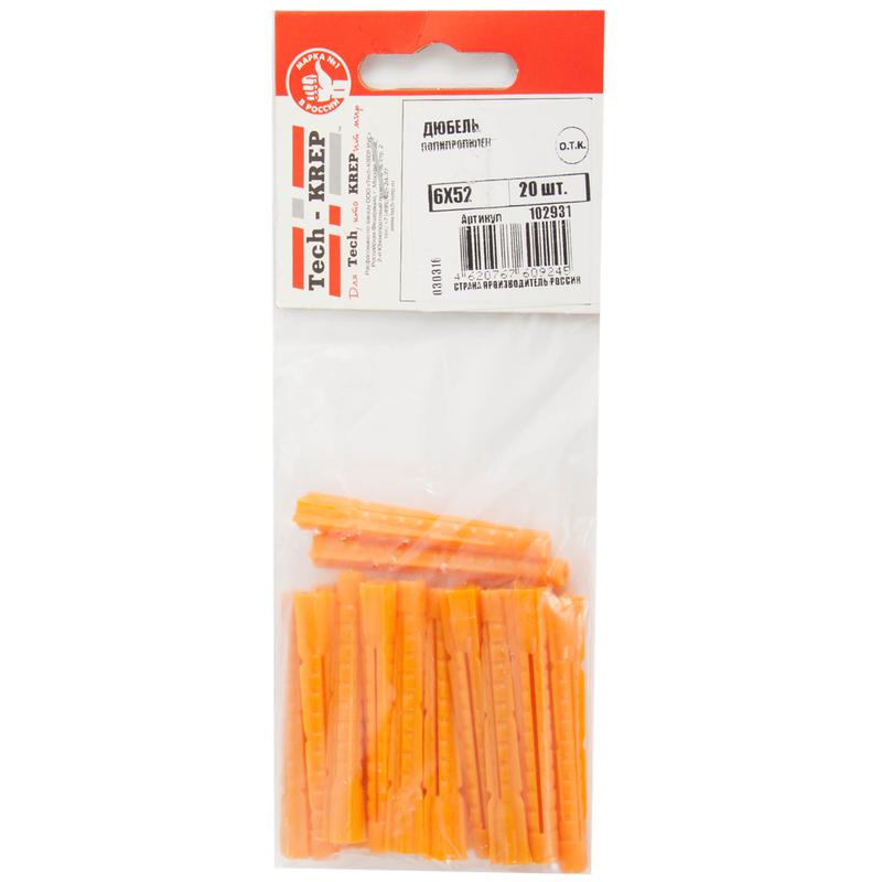 Дюбель универс. 6х52 полипропилен (уп.20шт) пакет Tech-Krep 102931