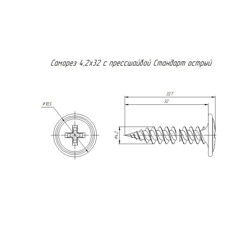 Саморез 4.2х32 с пресс-шайбой острый оцинк. (уп.100шт) Промрукав PR08.3626