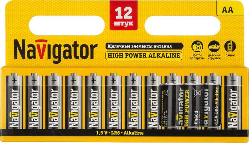 Элемент питания алкалиновый AA/LR6 94 782 NBT-NE-LR6-BP12 (блист.12шт) NAVIGATOR 94782