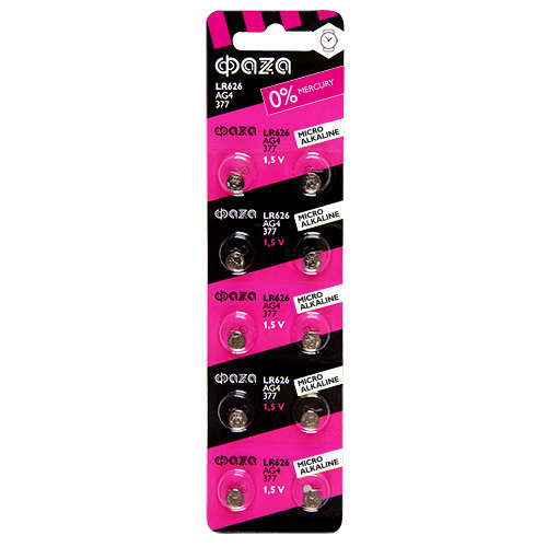 Элемент питания алкалиновый "таблетка" LR66/LR626/AG4/G4 1.5В BL-10 (уп.10шт) ФАZА 5002555