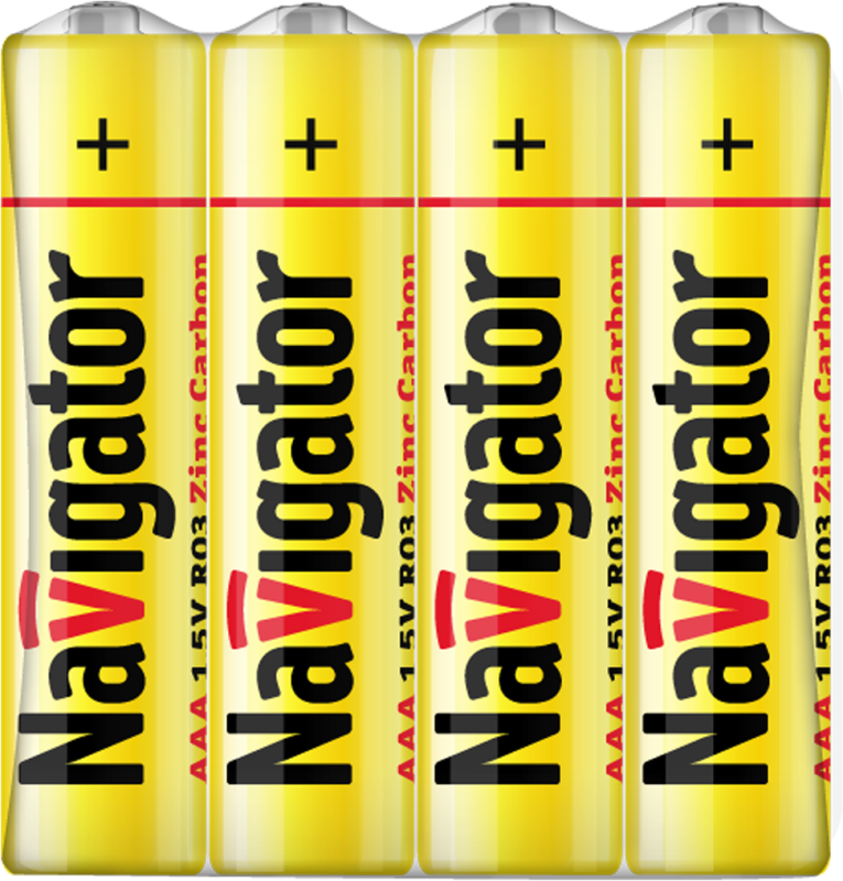 Элемент питания 94 757 NBT-NS-R03-SH4 (шринка 4шт) Navigator 17007 представляет собой цилиндрическую цинково-угольную батарейку типоразмера ААА.