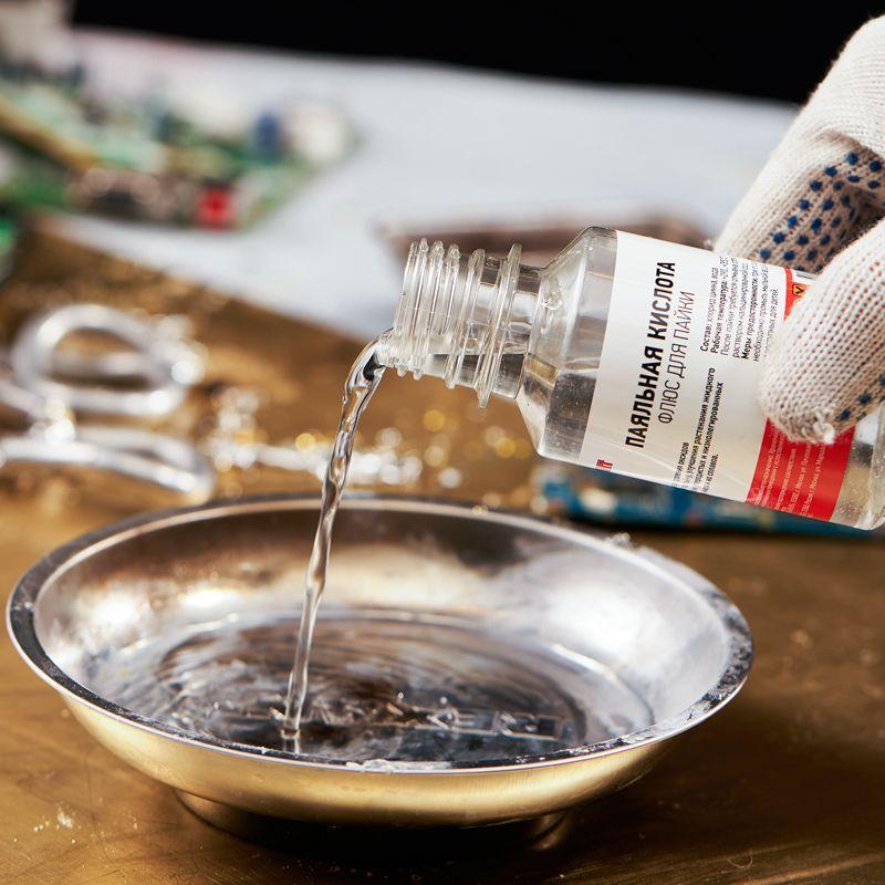 Паяльная кислота REXANT является одним из самых распространенных флюсов для пайки. Предназначена для удаления оксидов с поверхности под пайку и улучшения растекания жидкого припоя при пайке углеродистых и низколегированных сталей, меди, никеля и их сплавов. Применяется при пайке и лужении деталей припоями оловянно-свинцовой. Изготовлена в соответствии с ОСТ 4Г 0.033.200.