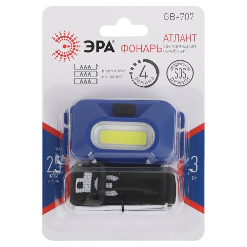 Фонарь налобный светодиодный GB-707 "Атлант" батареечный 3 режима 5Вт COB 3хААА ЭРА Б0052749 -