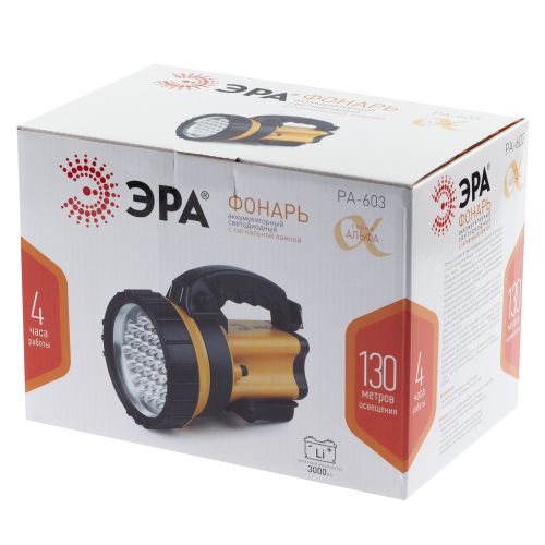 Фонарь-прожектор аккумуляторный Альфа PA-603 36LED литиевый аккум. 3А.ч ЗУ 220В + 12В (инд. упак.) Эра Б0031034