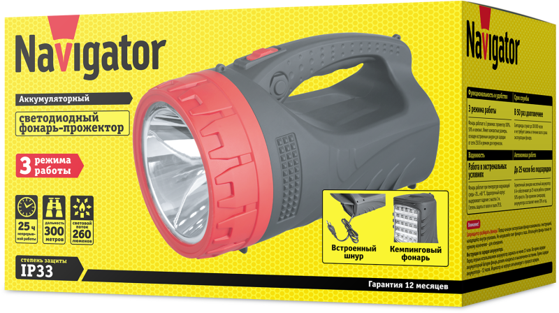 Фонарь-прожектор аккумуляторный кемпинговый 71 598 NPT-SP16-ACCU 24LED 5Вт 230лм аккум. 4А.ч NAVIGATOR 71598