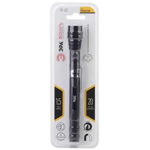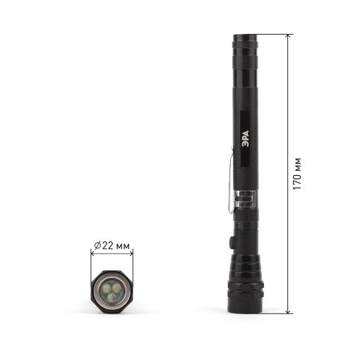 ЭРА RB-602 - металлический LED-фонарь с удлиняющейся телескопической ручкой и гибким магнитным наконечником. Три ярких светодиода последнего поколения - не тускнеют со временем и не нуждаются в замене. Направленный световой луч оптимальной дальности. Фонарь с телескопической ручкой - большая редкость на рынке. Он не только способен удивить своим функционалом, но и становится отличным помощником в нештатных ситуациях. С помощью ЭРА RB-602 можно отлично подсветить даже самые отдалённые и недоступные уголки помещения - ручка удлиняется почти в 4 раза и достигает практически полуметра длины. При этом она очень тонкая и проникает даже в узкие пространственные промежутки. Три ярких светодиода находятся в верхней гибкой части ручки - бонус для освещения труднодоступных мест. Ещё одно преимущество - светодиодная часть имеет магнитную подложку, таким образом фонарь помогает достать закатившиеся под мебель мелкие металлические предметы. В собранном виде ЭРА RB-602 очень компактен - 18 см в длину и всего сантиметр в ширину.