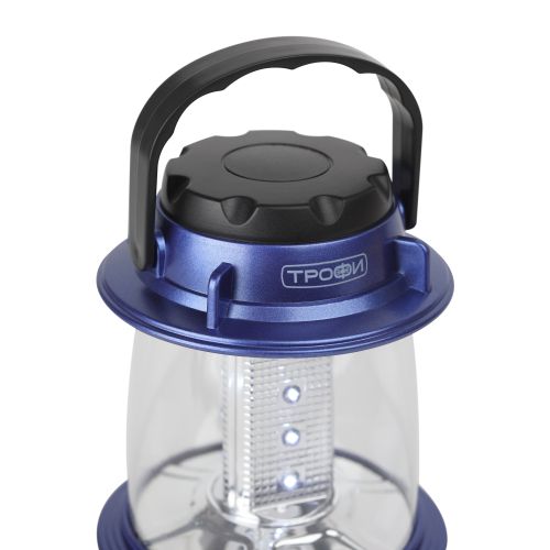 ТРОФИ КВ-101 - кемпинговый светодиодный фонарь в стильном корпусе оттенка синий металлик. Работает от 3 пальчиковых батареек (3 х АА). Оснащён диммером для плавной регулировки яркости света. Имеет удобную ручку для переноса и подвеса. 12 ярких светодиодов нового поколения равномерно распределены по всем сторонам светильника, что позволяет создать качественное объёмное освещение. Прекрасный вариант для походов, отдыха на природе, для дачи, бытовых, строительных и ремонтных работ. От одного комплекта алкалиновых элементов питания непрерывно светит 10 часов. Яркая фирменная упаковка и эффектное оформление фонаря делают ТРОФИ КВ-101 универсальным подарком к любому празднику для любого человека.