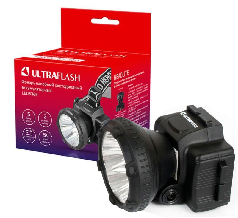 Фонарь налобный аккумуляторный LED 5365 (220В 5LED 2 режима; черн.) Ultraflash 11648