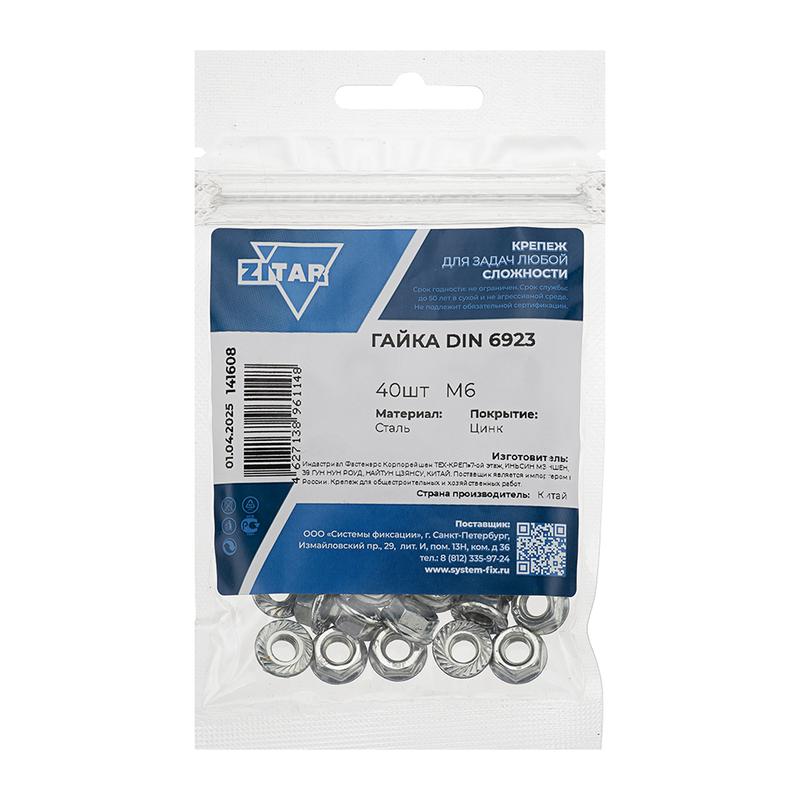 Гайка шестигранная М6 цинк. с фланцем DIN 6923 (уп.40шт) пакет Tech-Krep 141608