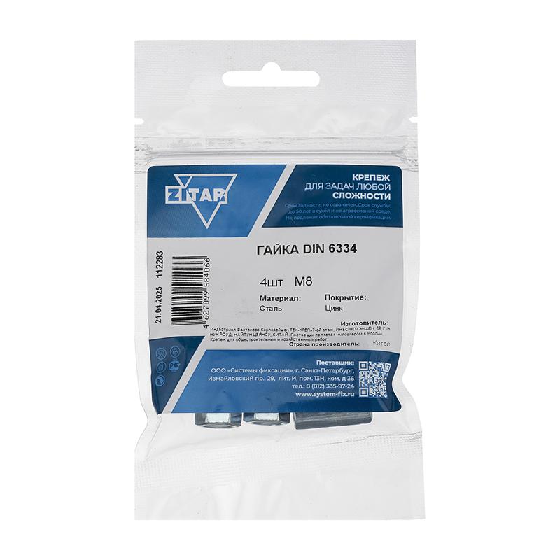 Гайка соединительная М8 DIN 6334 цинк. (пакет) (уп.4шт) Zitar 112283