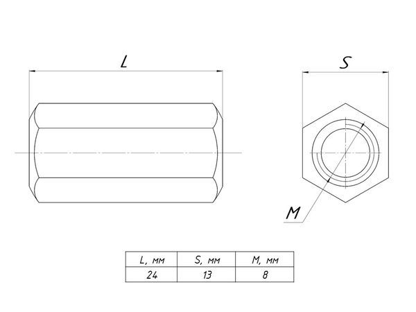 Гайка соединительная М8 DIN 6334 цинк. (пакет) (уп.4шт) Zitar 112283