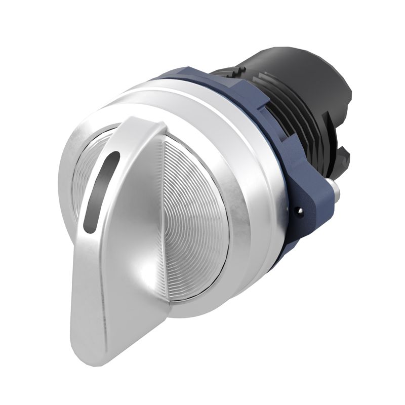 Головка переключателя на 3 положения с возвратом выполнена из прочного алюминия и имеет стандартную ручку для удобства эксплуатации. Механизм возврата гарантирует быстрый возврат в исходное состояние, улучшая точность управления и повышая безопасность работы системы.