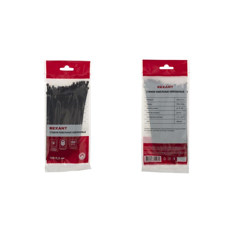 Хомут кабельный 2.5х150 нейл. черн. (уп.100шт) Rexant 07-0151
