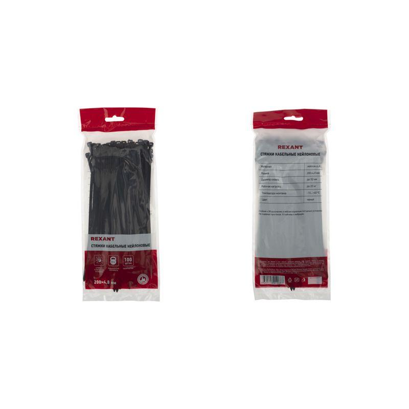Хомут кабельный 4.8х200 нейл. черн. (уп.100шт) Rexant 07-0201-5