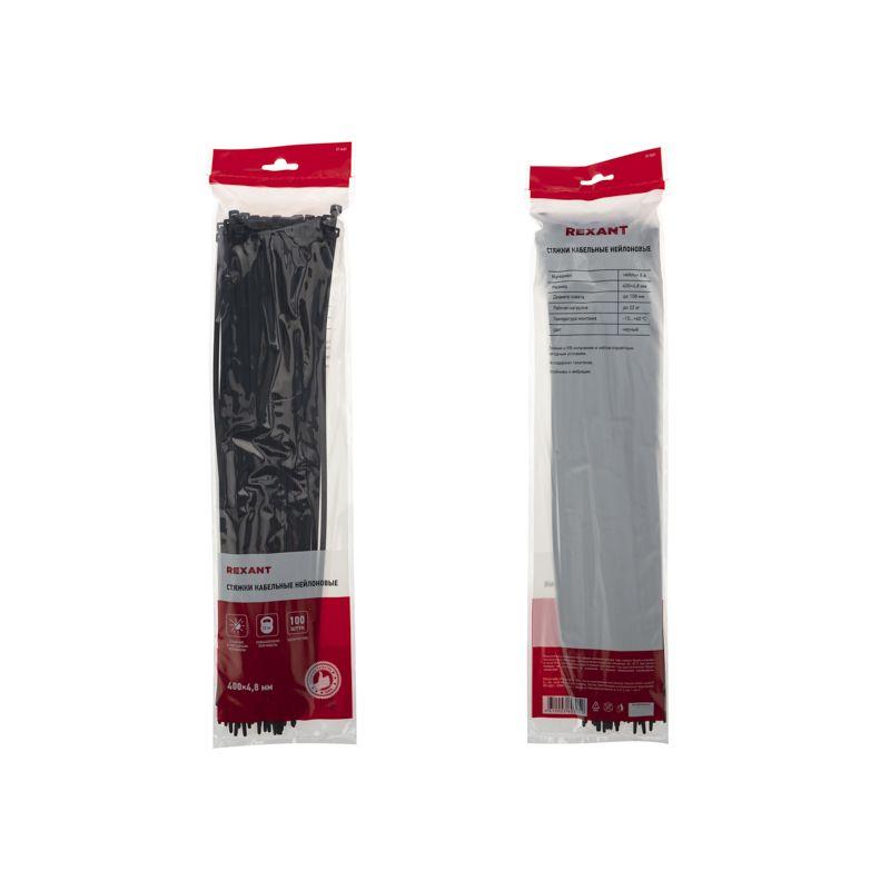 Хомут кабельный 4.8х400 нейл. черн. (уп.100шт) Rexant 07-0401