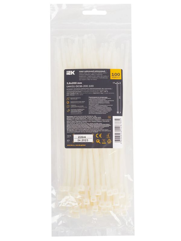 Хомут кабельный 3.6х200 нейл. бел. (уп.100шт) ИЭК UHH31-D036-200-100