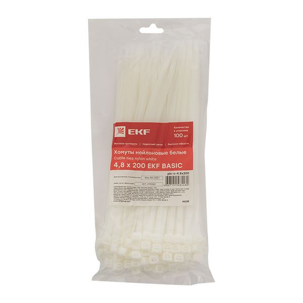 Хомут кабельный 4.8х200 нейл. бел. (уп.100шт) EKF plc-c-4.8x200 -