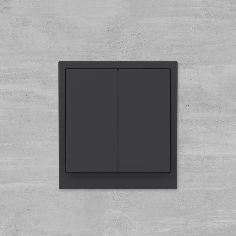Двухклавишный инвертор применяется для управления двумя контурами освещения из 3 мест. Предназначен для скрытого монтажа в стену. Характеристики устройства: номинальное напряжение 250 В, номинальный ток 16 А. Материал: металл, поликарбонат. Пластиковые элементы имеют цвет "Черный уголь". Для декоративного оформления электроустановочных изделий используются рамки серии "KANT".